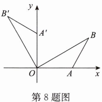 8. 如图,在平面直角坐标系xOy中,点B在第一象限,点A在x轴的正半轴上,∠AOB= ∠B= 30°,OA= 2,将△AOB绕点O逆时针旋转90°,点B的对应点B'的坐标是( ).