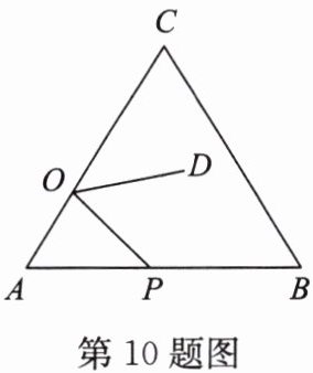 10. 如图,在等边△ABC中,AC= 9,点O在AC上,且AO= 3,点P为AB上一动点,连接OP,将线段OP绕点O逆时针旋转60°得到线段OD,要使点D恰好落在BC上,则AP的长应为( ).