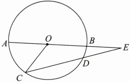 14. 如图,$ AB $ 是 $ \odot O $ 的直径,$ CD $ 是 $ \odot O $ 的弦,$ AB $,$ CD $ 的延长线交于点 $ E $. 若 $ AB = 2DE $,$ \angle AOC = 54° $,求 $ \angle E $ 及 $ \angle C $ 的度数.