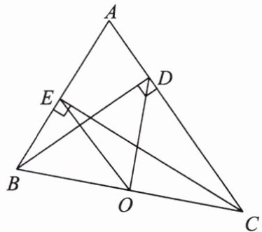 16. 如图,在 $ \triangle ABC $ 中,$ BD $,$ CE $ 是两条高,点 $ O $ 为 $ BC $ 的中点,连接 $ OD $,$ OE $. 求证:$ B $,$ C $,$ D $,$ E $ 四个点在以点 $ O $ 为圆心的同一个圆上.