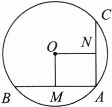 9. 如图,⊙O的弦AB⊥AC,OM⊥AB,ON⊥AC,垂足分别为M,N,则四边形OMAN是______形;若OM= 2,ON= 3,则AB= ______,AC= ______,OA= ______.