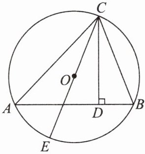 15. 如图,$\odot O为\triangle ABC$的外接圆,$CE是\odot O$的直径,$CD\perp AB于点D$. 求证:$\angle ACD = \angle BCE$.
