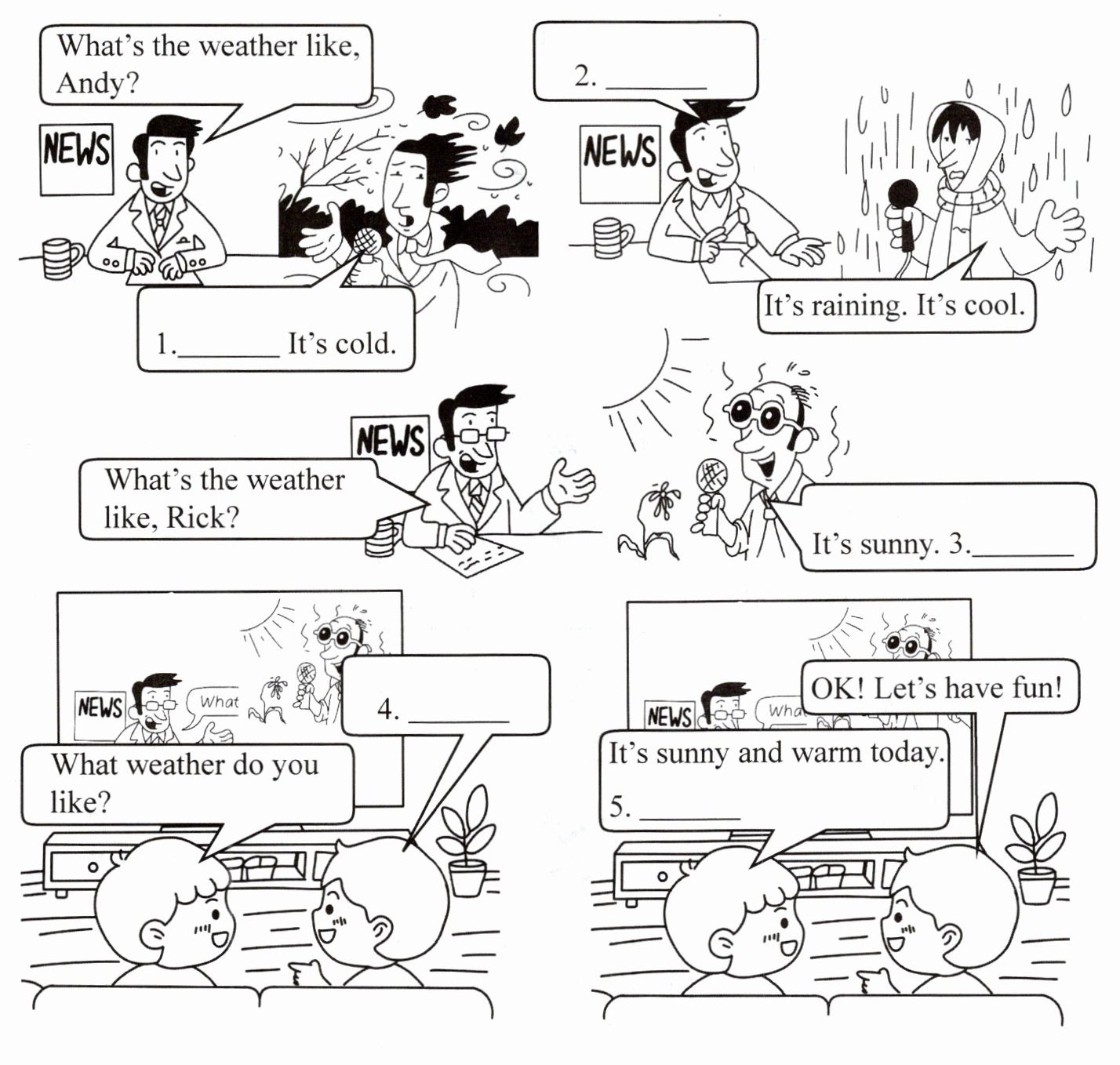 八、看图读对话,选择最佳选项,将对话补充完整,将相应的标号填写在横线上。