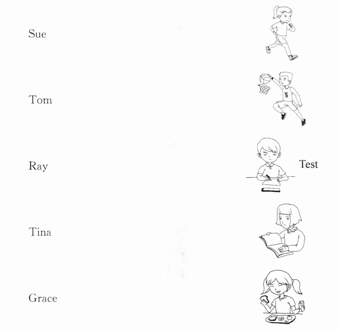 答案: Sue Tom Ray Test Tina Grace