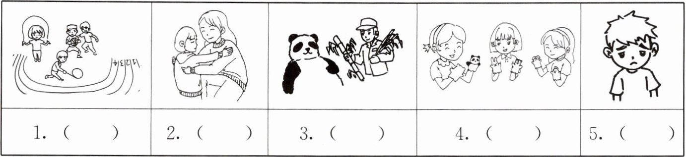 六、看图读句子,将句子的标号填写到与其意思相对应的图片下面的括号内。(其中有一个句子为多余选项)