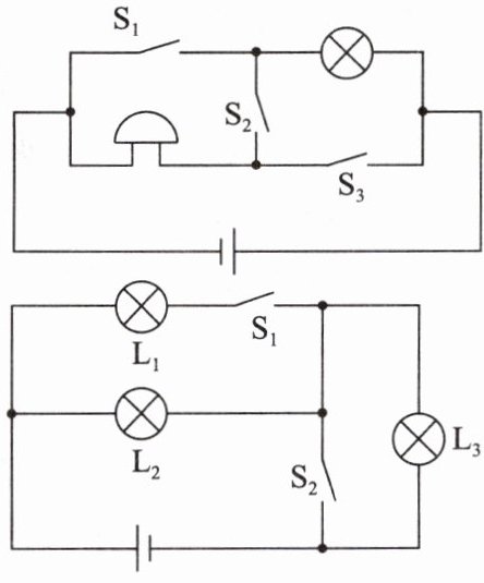 9. 为了便于甲、乙两室内的人相互传呼,两室内各安装一个电铃、一个开关,且甲室内安装电源,使任何一方闭合开关,对方铃响。请在图中画出符合上述要求的电路图。