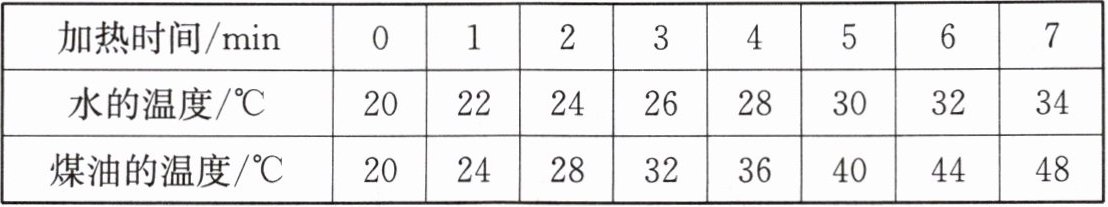 13. 在做 “探究不同物质的吸热能力与物质种类的关系” 实验时,小明取了两只相同的烧杯,且在烧杯里分别装入质量和初温都相同的水和煤油。他用两个完全相同的 “热得快” 给它们加热,并将得到的实验数据记录在下表中,请你回答下列问题: