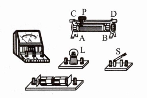 (1)电路图:电源、开关S、滑动变阻器、灯泡L、电流表A串联连接(电路图符号:电源用长线短线表示,开关S,滑动变阻器符号,灯泡L,电流表A,串联)