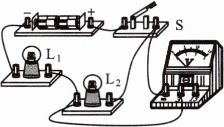 10. 如图所示,用电压表测灯泡 $ L_1 $ 两端的电压。此电路连接有误,请用文字说明其中的错误。并在图中改正。