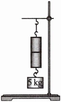 12. 小刚将两个铅柱底面削平后紧压在一起,使两铅柱结合成一个整体,如图所示,在铅柱下悬挂一个$5kg$的重物,重物不能把两铅柱拉开。于是小刚得出结论:两铅柱没被重物拉开,主要是因为铅分子之间存在引力作用。同组的小乐则认为:两铅柱没被重物拉开,是靠大气压的作用。请你针对小乐的看法,设计一个实验,证明两铅柱没被重物拉开,不是因为大气压的作用。