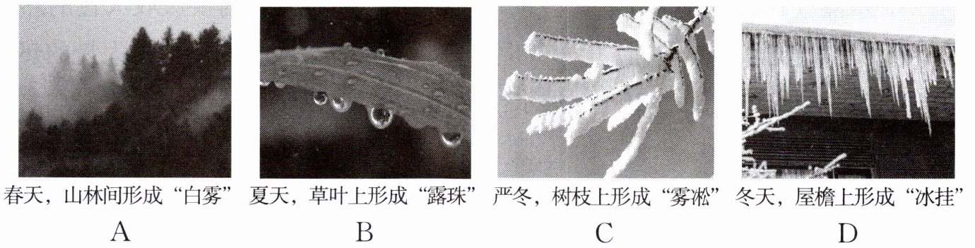 3. 下列现象中属于熔化的是______,属于升华的是______,属于凝华的是______。(均填字母)