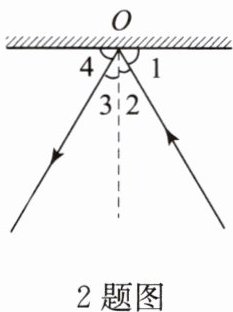 4. 当入射光线垂直于平面镜时,入射角是____$^{\circ}$,反射角是____$^{\circ}$。如果入射光线不变,则当镜面旋转$20^{\circ}$后,反射光线与入射光线的夹角是____$^{\circ}$。