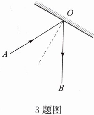 3. 如图所示,$AO$为入射光线,$OB$为反射光线,$O$为入射点。如果另有一入射光线沿$BO$射到镜面上,则根据反射时光路是____的,其反射光线一定沿____射出。