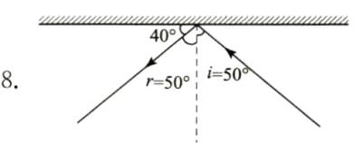 8. 在下图中画出入射光线,并标出入射角、反射角及它们的大小。