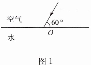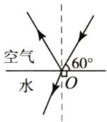 3. 在空气和水的交界面上,同时发生反射和折射现象,当反射光线和入射光线的夹角为$120^{\circ}$时,反射光线与折射光线的夹角为$90^{\circ}$,则折射角为______$^{\circ}$。