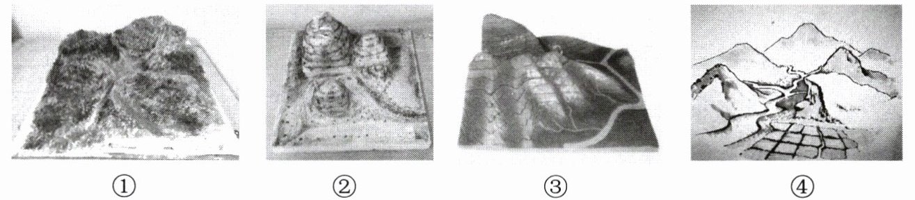 9. 下列地形模型或示意图与图5所示等高线地形图相符合的是( )