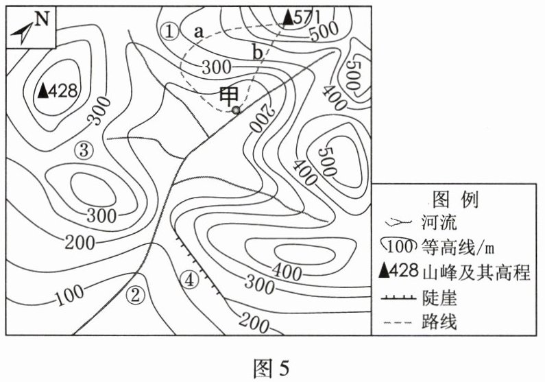 图5是北京市某山区等高线地形图。某校同学利用暑假到此地区进行登山、露营活动。读图,完成第9~12题。