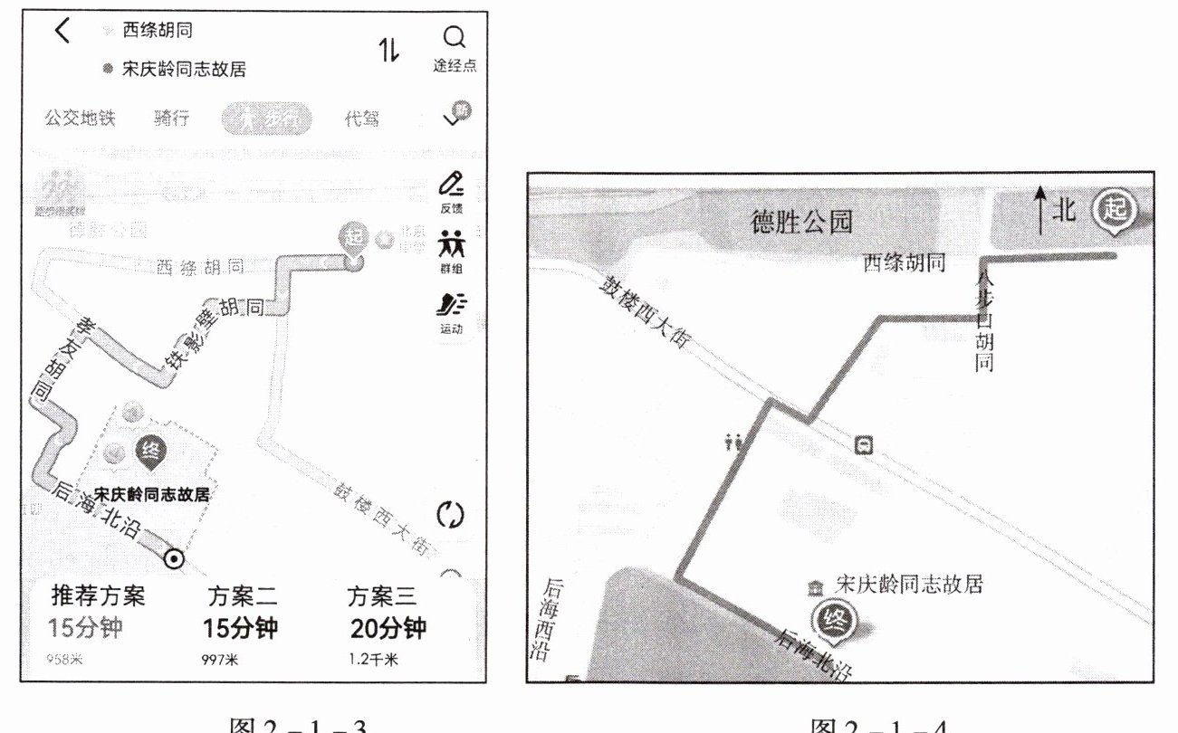 (3)同学们还利用该地图的测距功能测得图 2 - 1 - 4 中出发地点到宋庆龄同志故居的直线距离约 480 米,而其图上距离约 6 厘米,则图 2 - 1 - 4 的数字式比例尺可表示为______。