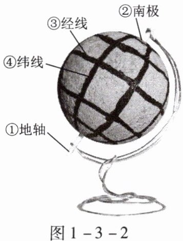 2. 某同学制作的简易地球仪如图1-3-2所示,其中标注正确的是 ( )