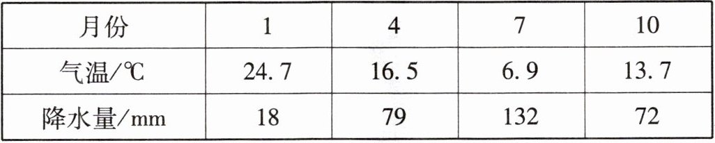 |气温/$^{\circ}C$|24.7|16.5|6.9|13.7|