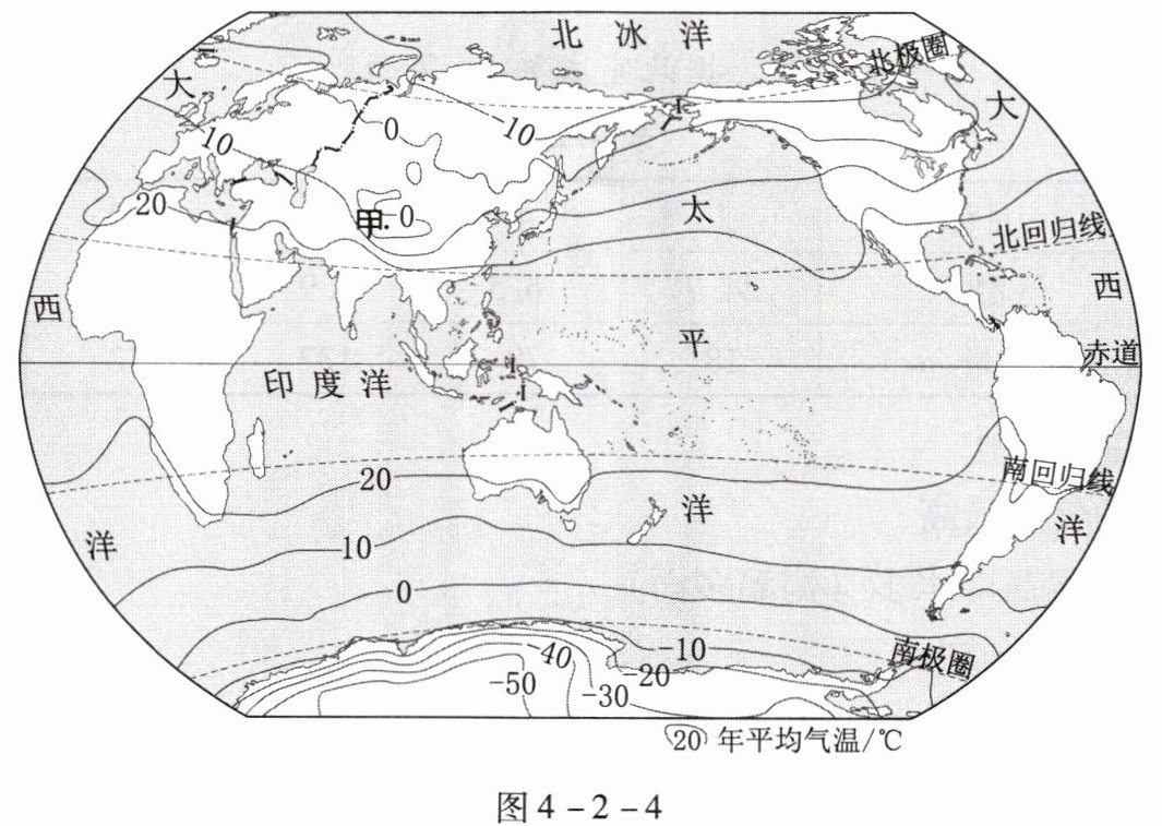 2. 读图4-2-4“世界年平均气温分布图”,回答下列问题。