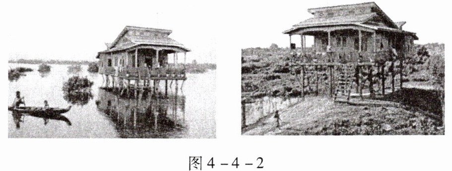 传统民居往往体现了人类对自然环境的适应。读图4-4-2“某地不同季节的照片”,完成第3、4题。