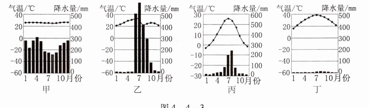 4. 图示地区的气候类型,最有可能是图4-4-3中的( )