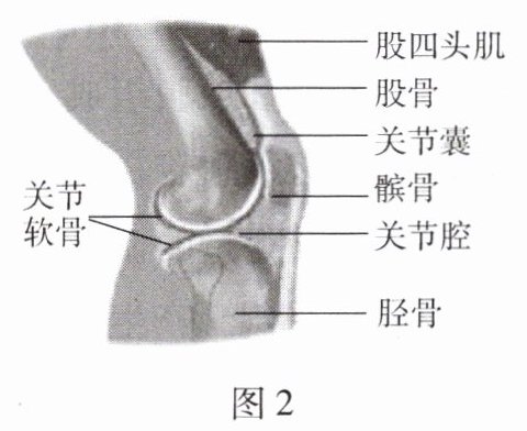 (1)当往下蹬脚踏板时,即如图1所示屈腿变为伸腿动作时,图2中股四头肌肌群______(填“收缩”或“舒张”)提供动力,牵引胫骨绕______运动。此动作的完成,还需要______系统的调节。