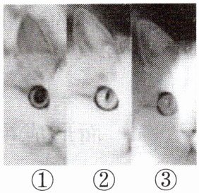 4. 右图是猫在不同光照环境中瞳孔的状态。在光线由强逐渐减弱的过程中,瞳孔变化的顺序依次为( )
