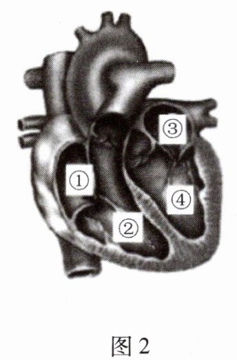 (2)口服抗组胺药物,可有效缓解花粉过敏的症状。药物主要在小肠被吸收进血液,首先到达如图2所示的心脏的[ ]______,再经过血液循环到相应部位发挥药效。鼻喷糖皮质激素(又名肾上腺皮质激素)也是一种常用的治疗花粉症的药物。根据激素的有关知识可推知,此药物的用量一般______(填“较多”或“较少”)。