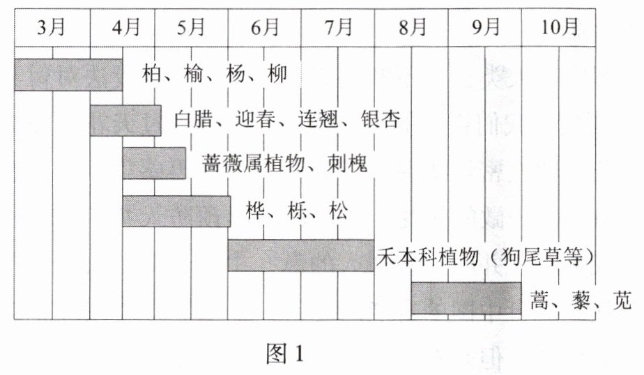 (3)由文中信息可知,5月下旬北京的致敏植物花粉主要来自______。从文中还可以推测,引起花粉症的花粉主要依靠______(填“风媒”或“虫媒”)传粉。