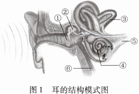 (2)在形成听觉的过程中,耳郭收集的声波通过图1所示的外耳道传播到[ ],其产生的机械振动经听小骨传递到[④],最终在形成听觉。