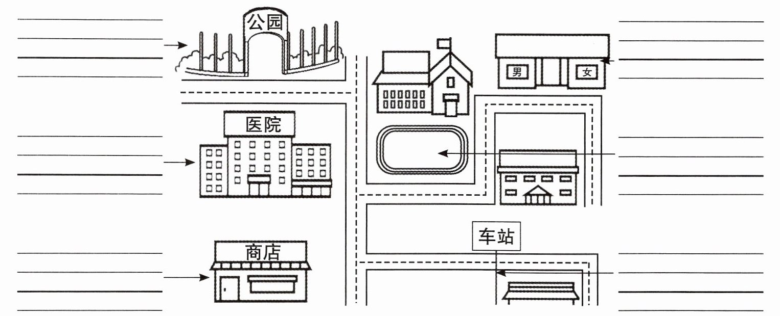 park toilets hospital playground shop bus stop(从左到右,从上到下)