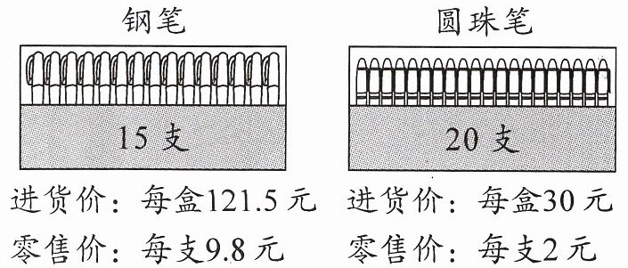 六、【思维拓展】下面右边是某文具店钢笔和圆珠笔的进货价和零售价。这个文具店一天共卖出钢笔 32 支,圆珠笔 56 支。这一天卖钢笔和圆珠笔共盈利多少元?