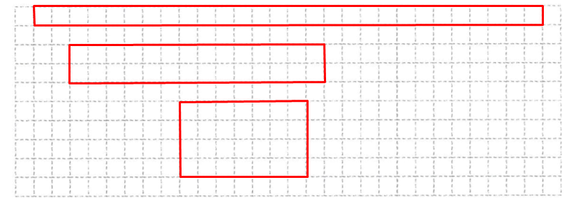 五、在方格纸上画出所有面积是$28cm^2$且边长是整厘米数的长方形。(小方格边长表示1 cm)(6分)