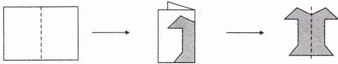 四、将 1 张长方形纸沿虚线对折(如下图),画出图形并剪下,打开后的图形是一个(