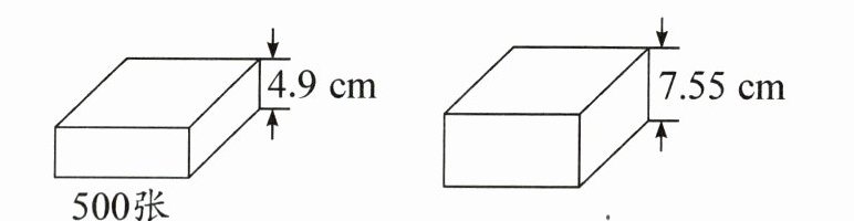 5. 如图,有两摞相同规格的打印纸,第一摞有$500$张,第二摞大约有(