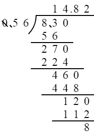 $8.3÷0.56\approx$ $5.959÷5.9=$