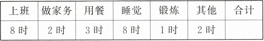 1. 妈妈一天的时间安排如下表(先填空,再解决问题)。