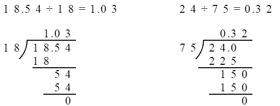 $18.54÷18= $ $24÷75= $ $0.12÷5= $ $33÷6= $