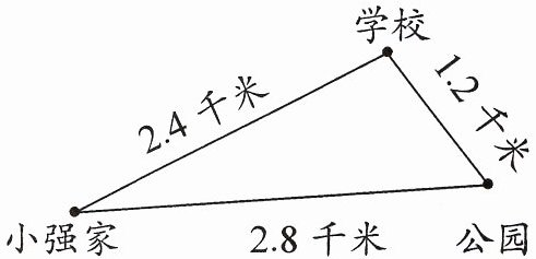 1.2.8÷3.2=0.875(时) 2.小强从家出发去学校需要步行多长时间?2.4÷3.2=0.75(时)(答案不唯一)