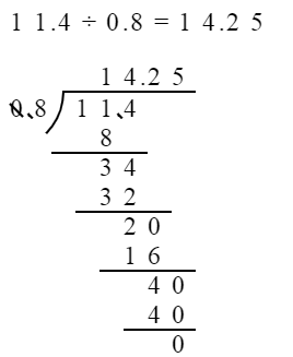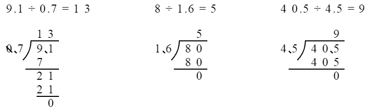 $9.1÷0.7= $ $8÷1.6= $ $40.5÷4.5= $ $11.4÷0.8= $