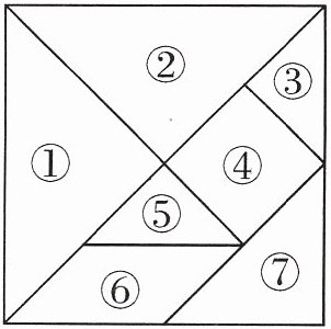 四、【思维拓展】找一找七巧板中的分数,填一填。