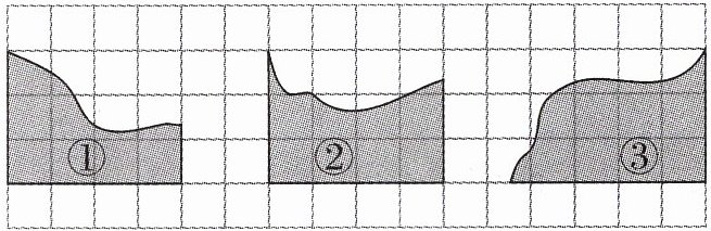 三、估计右边方格纸上图形的面积。(每个小方格的面积为$1cm^2)$