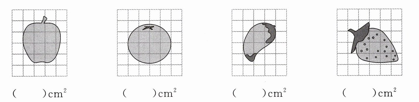 二、估一估下面图形的面积。(每个方格为$1cm^2)$