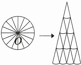 6. 如图,把一个圆平均分成 16 份,剪开后拼成一个近似三角形,已知三角形的周长大约是 19.14 cm,则圆的面积是(