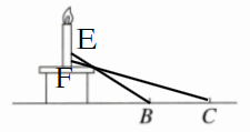 1. 如图,台子上有一支正在燃烧的蜡烛,当烛光最近只能照到点 B 时,蜡烛燃烧到什么高度?用点 E 标出。当烛光最近只能照到点 C 时,蜡烛燃烧到什么高度?用点 F 标出。(6 分)