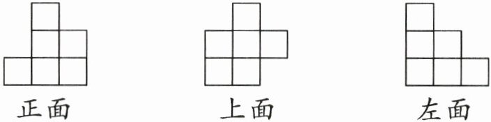 从上面看,第一层有6个;从正面看,有三层,结合从左面看的形状,第二层至少有2个,第三层有1个,如图。搭成这个立体图形至少需要9个这样的小正方体。