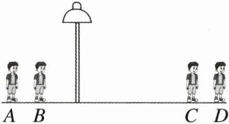 2. 小乐从点 A 走向点 D 的过程中,影子的方向和长度是如何变化的?(4 分)