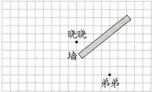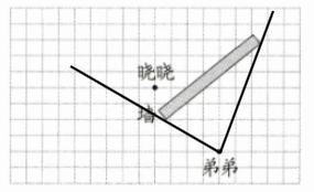 2. 晓晓和弟弟在玩捉迷藏,弟弟在墙的前面不动,晓晓在墙的后面移动,但不能让弟弟看见。在下图中画出晓晓可以活动的区域,用阴影表示。(4 分)